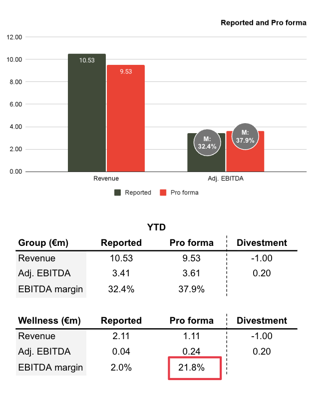 So on an annual basis, the move will increase EBITDA by about €0.3m, and increase reported margins, but more importantly, let the company put further focus on where the long-term value lies: their SaaS platforms. What is most crucial in this transformation is that Wellness will go from an EBITDA margin of 2% to 22% with a likely net contribution to cash flow as well.
