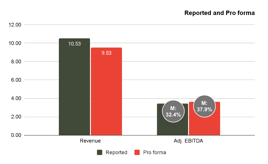 Using pro forma figures up until Q3. The proposed divested asset generated €1m in revenue, with an EBITDA impact of -€0.2m and a negative cash flow of €0.1m. For the Group, the recurring revenue as a percentage of total revenue would have been 95% without the assets.