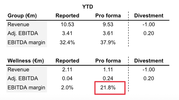 So on an annual basis, the move will increase EBITDA by about €0.3m, and increase reported margins, but more importantly, let the company put further focus on where the long-term value lies: their SaaS platforms. What is most crucial in this transformation is that Wellness will go from an EBITDA margin of 2% to 22% with a likely net contribution to cash flow as well.